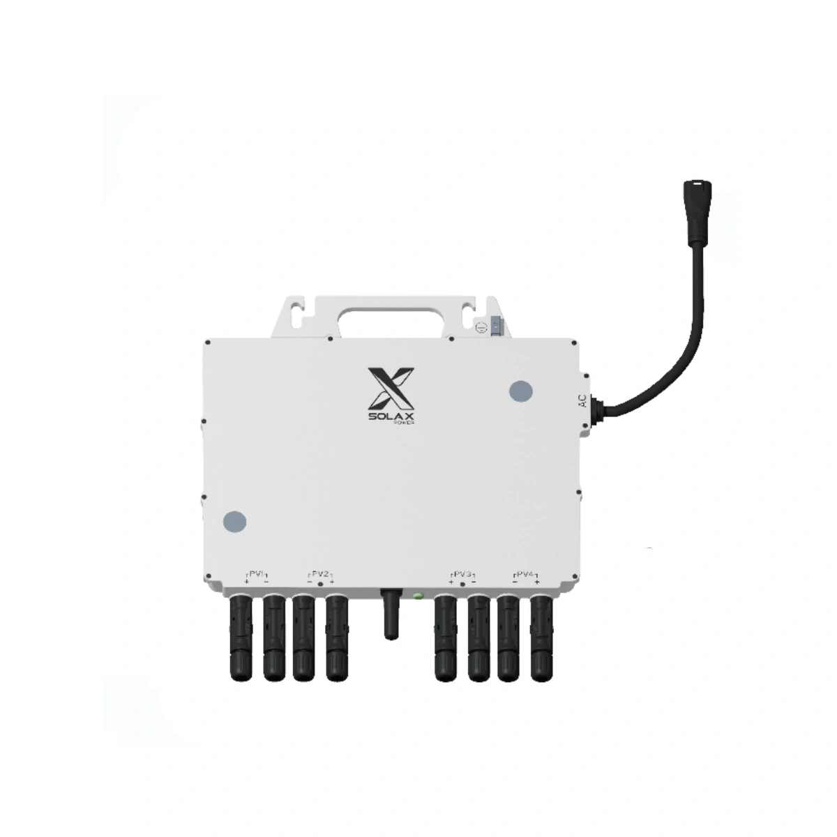 This SolaX microinverter supports up to four solar panels and features four independent MPPT trackers, allowing each panel to operate individually for maximum energy production.